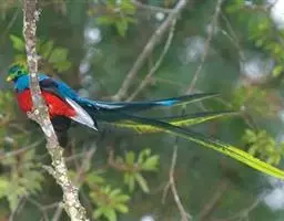 橙胸咬鹃:全长约28厘米。雄鸟头、颈橄榄绿色,上体及中央尾羽栗色;中央尾羽具黑色端,…