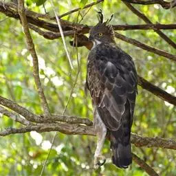 鹰雕,是隼形目鹰科鹰雕属大型猛禽,俗称熊鹰、赫氏角鹰。其上体暗褐色,头后冠羽常竖立起,…