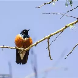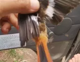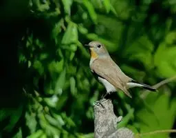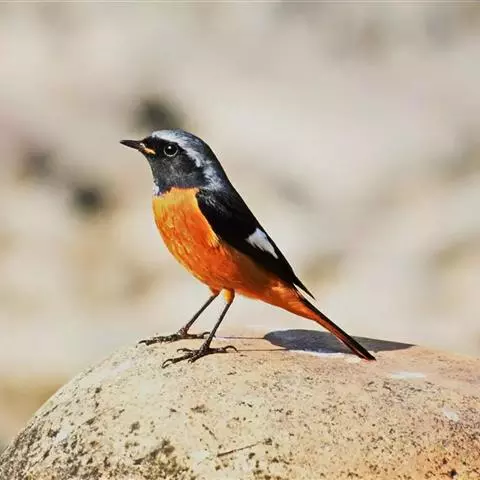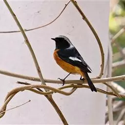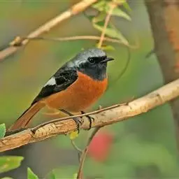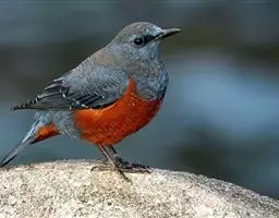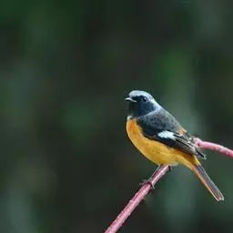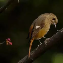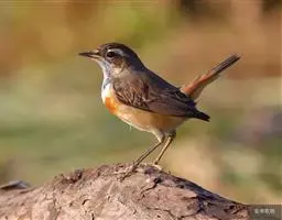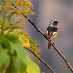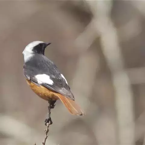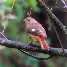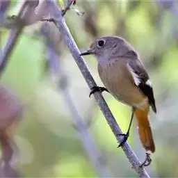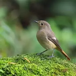 赭红尾鸲(学名:Phoenicurus ochruros):小型鸟类,体长13-16cm。雄鸟前额、头侧、颈侧、颏至胸概黑色,头顶和背灰色或黑色,腰、尾上覆羽、尾下覆羽、外侧尾羽和腹栗棕色,中央尾羽褐色,两翅黑褐色。雌鸟上体和两翅淡褐色,尾上覆羽和外侧尾羽淡棕色,中央尾羽褐色,下体浅棕褐色。