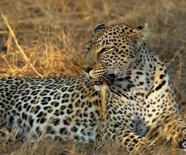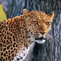 非洲豹(学名:Panthera pardus pardus)是豹的指名亚种,体重40-90千克,时速可达70km。肌肉发达,脖子和头部结实有力。头小尾长,四肢短健;尾尖粗重,有助于它在高速奔跑时,保持身体的平衡。毛被黄色,满布黑色环斑;头部的斑点小而密,背部的斑点密而较大,斑点呈圆形或椭圆形的梅花状图案,前足5趾,后足4趾,爪灰白色,能伸缩。生活于森林、灌丛、湿地、荒漠等环境,其巢穴多筑于浓密树丛、灌丛或岩洞中。营独居生活,常夜间活动,白天在树上或岩洞休息。在食物丰富的地方,活动范围较固定;食物缺乏时,则游荡数十公里觅食。守卫自己较固定的领域,雄性的领域比雌性者大。捕食各种有蹄类动物,也捕食猴、兔、鼠类、鸟类和鱼类,秋季也采食甜味的浆果。食物缺乏时,也于夜晚潜入村屯盗食家禽家畜。分布于非洲。