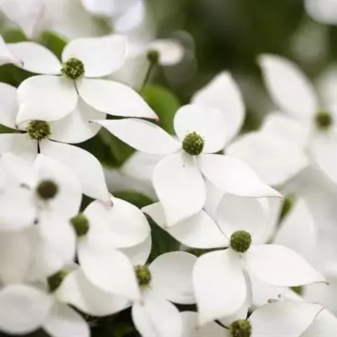 头状花序球形,约为100余朵绿色花聚集而成,直径1.2厘米;总苞片4,白色,倒卵形或阔倒卵形,稀近于圆形,长3.5-6.2厘米,宽1.5-5厘米,先端突尖,基部狭窄,两面微被贴生短柔毛;花萼管状,长约1.2毫米,先端4裂,裂片齿形,外侧密被白色细毛及少数褐色毛,内侧有白色短柔毛;花瓣4,长圆形,长3-4毫米,下面被有白色贴生短柔毛;雄蕊4,花丝纤细,长约3毫米,花药椭圆形,长近0.8毫米;花盘环状,略有4浅裂;子房下位,花柱圆柱形,长1.5毫米,密被白色丝状毛。