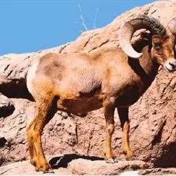 盘羊:雄性肩高可达120厘米,体重可达200千克。雄性的弯角粗大,长达1米以上,向下扭曲呈螺旋状,…