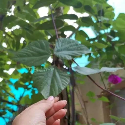 多年生、缠绕藤本。全株几无毛,茎长可达6米,常呈淡紫色。羽状复叶具3小叶;托叶基着,披针形;小托叶线形,长3-4毫米;小叶宽三角状卵形,长6-10厘米,宽约与长相等,侧生小叶两边不等大,偏斜,先端急尖或渐尖,基部近截平。