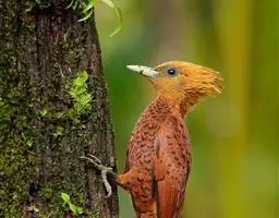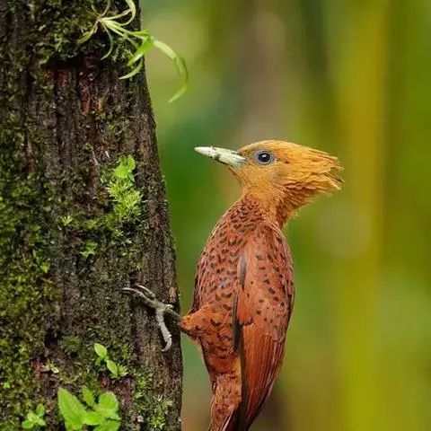 栗啄木鸟:是一种红褐色啄木鸟,体长21厘米。雄性成鸟整个头棕色,…