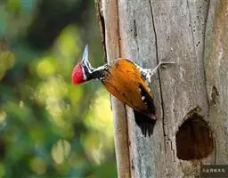 黑啄木鸟属䴕形目、啄木鸟科,是一种大型的啄木鸟,体长45-47厘米,翼展64-68厘米,…