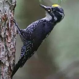 三趾啄木鸟,是啄木鸟科、啄木鸟属的小型鸟类,体长20-23厘米,雄鸟头顶金黄色,雌鸟黑色而具白色斑点。…