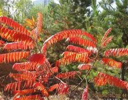 火炬树是漆树科盐麸木属落叶灌木或小乔木;株高,树形不整齐;小枝粗壮,红褐色,密生绒毛;叶轴无翅,…