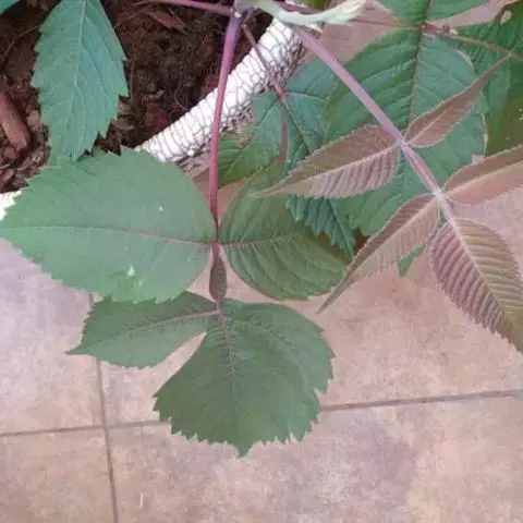 奇数羽状复叶长25-40厘米,有小叶3-6对,叶轴无毛,叶柄纤细,基部略膨大;小叶膜质至纸质,卵形或卵状披针形或卵状长圆形,长4-12厘米,宽2-4.5厘米,先端长渐尖,基部多少偏斜,阔楔形或近圆形,全缘或幼株叶边缘具粗锯齿,两面无毛或稀叶背脉腋被毛,侧脉8-10对,两面突起,网脉细,不显;小叶柄纤细,长2-5毫米。
