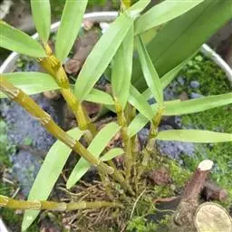 华石斛:茎直立或弧形弯曲而上举,细圆柱形,偶尔上部膨大呈棒状,不分枝,具多个节。叶数枚,二列,通常…