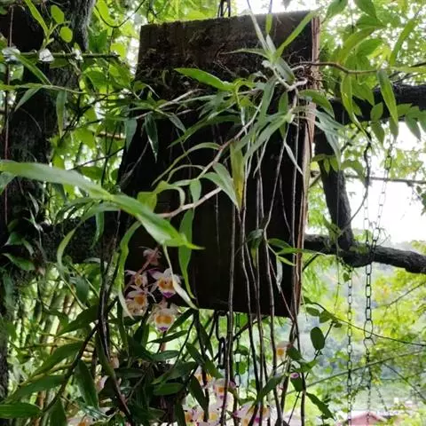 束花石斛是兰科石斛属植物。茎粗厚,肉质,下垂或弯垂,圆柱形,不分枝,具多节。叶二列,互生于整个茎上,…