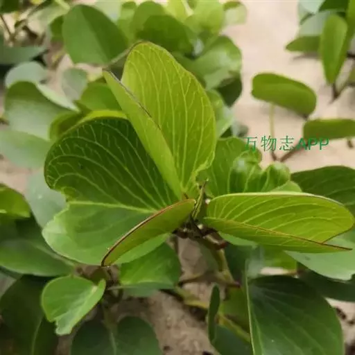 厚藤为多年生草本,全株光滑;茎极长而匍匐地面;叶互生,厚革质,形如马鞍。