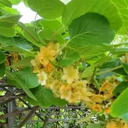 中华猕猴桃,是猕猴桃科猕猴桃属的多年生木本植物,幼枝有白色绒毛;叶纸质,呈倒阔卵形;聚伞花序,花片小,…