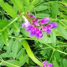 救荒野豌豆(学名:Vicia sativa L.)是豆科,野豌豆属一年生或二年生草本植物,高可达105 厘米。茎具棱,被微柔毛。叶轴顶端卷须;托叶戟形,小叶片长椭圆形或近心形,先端圆或平截有凹,侧脉不甚明显,花 腋生,近无梗;萼钟形,萼齿披针形或锥形;花冠紫红色或红色,旗瓣长倒卵圆形,翼瓣短于旗瓣,子房线形,子房具柄短,荚果线长圆形,果瓣扭曲。种子圆球形,棕色或黑褐色,4-7月开花,7-9月结果。