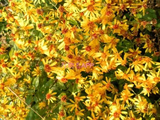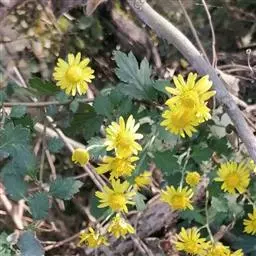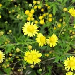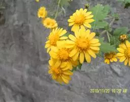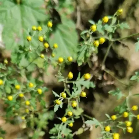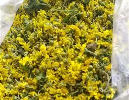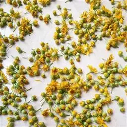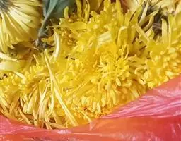 野菊花(学名:Dendranthema indicum)为菊科多年生草本植物,野菊花头状花序的外形与菊花相似,呈类球形,直径0.3~1cm,棕黄色。总苞由4~5层苞片组成。舌状花一轮,黄色,皱缩卷曲;管状花多数,深黄色。体轻。性苦、味辛,微寒。野生于山坡草地、田边、路旁等野生地带。以色黄无梗、完整、苦辛、花未全开者为佳。