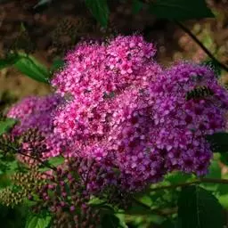 金焰绣线菊,栽培种,为落叶灌木,芽小,芽鳞2-8。单叶互生,具锯齿、缺刻或分裂,稀全缘,羽状脉,…