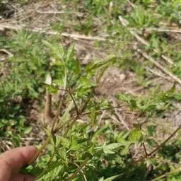 三出复叶,数叶与花簇生,或对生;小叶片为长椭圆状卵形、卵形或披针状卵形,边缘疏生粗大钝锯齿;长2-7厘米,宽1-5厘米,边缘缺刻状锯齿由多而锐至粗而钝,顶端3裂或不明显,两面疏生短柔毛,有时下面较密。