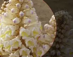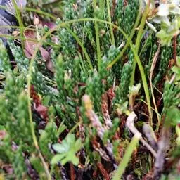 岩须(学名:Cassiope selaginoides Hook. f. et Thoms.)常绿矮小半灌木,高5-25厘米;枝条多而密,外倾上升或铺散成垫状,密生交互对生的叶。叶硬革质,披针形至披针状长圆形。花单朵腋生;花萼5,绿色或紫红色,裂片卵状披针形或披针形;花冠乳白色,宽钟状。蒴果球形,花柱宿存。花期4-5月,果期6-7月。产四川西部、云南西北部、西藏东南部。生于海拔2000-4500米的灌丛中或垫状灌丛草地。该种全草可入药。