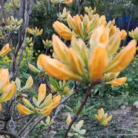 黄花杜鹃:灌木,高1-3米。幼枝细长,疏生鳞片。叶散生,叶片纸质,披针形、长圆状披针形或卵状披针形…