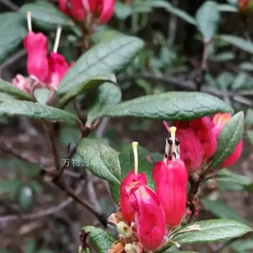 问客杜鹃:灌木,高1-3米。幼枝细长,密被腺体状鳞片。叶革质,椭圆形,卵状披针形或长圆形,上面被鳞…