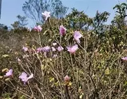 灰背杜鹃:常绿小灌木,高0.25-1米。茎直立,幼枝细长,呈扫帚状,黄棕色,密被棕黄褐色鳞片。叶芽…