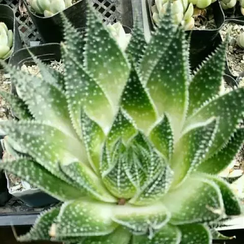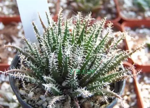 琉璃姬孔雀(学名:Aloe haworthioides Baker)又名羽生锦,是阿福花科芦荟属的多年生植物,多肉植物。分布于非洲的马达加斯加。肉质叶密集丛生,呈莲座状排列。叶片剑形,长约4厘米,深绿色,叶缘及叶表均有群生的白色毛刺。