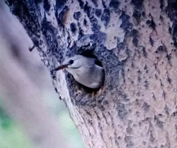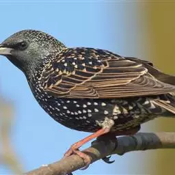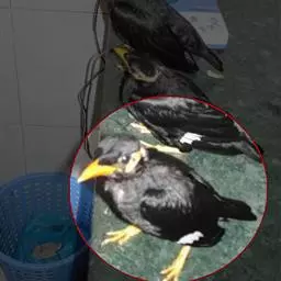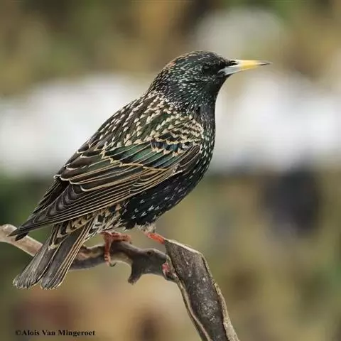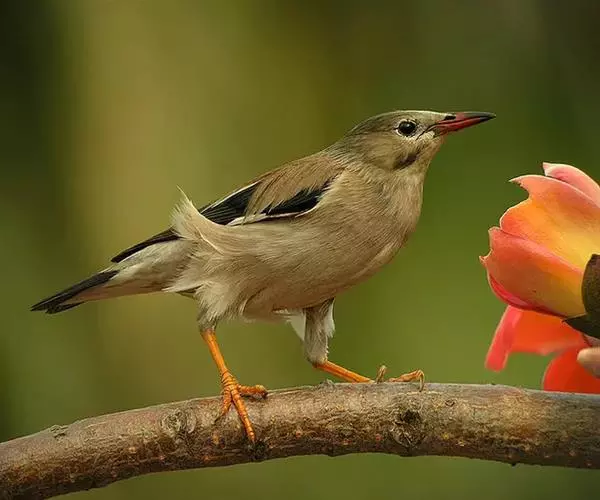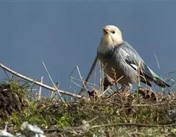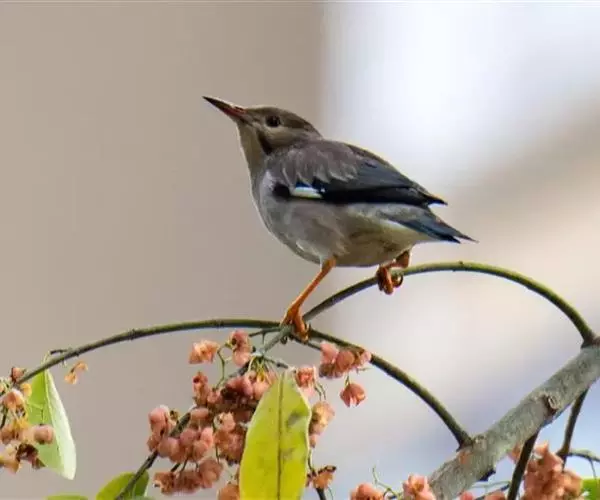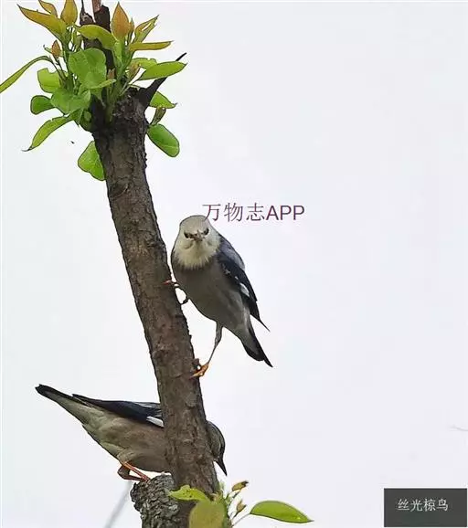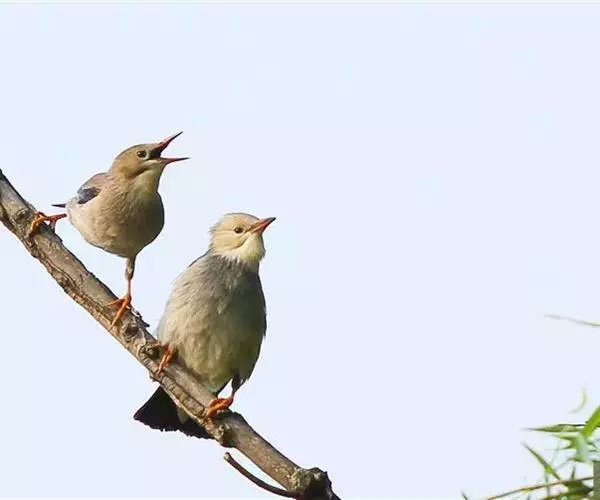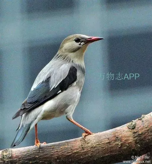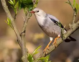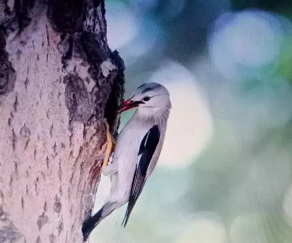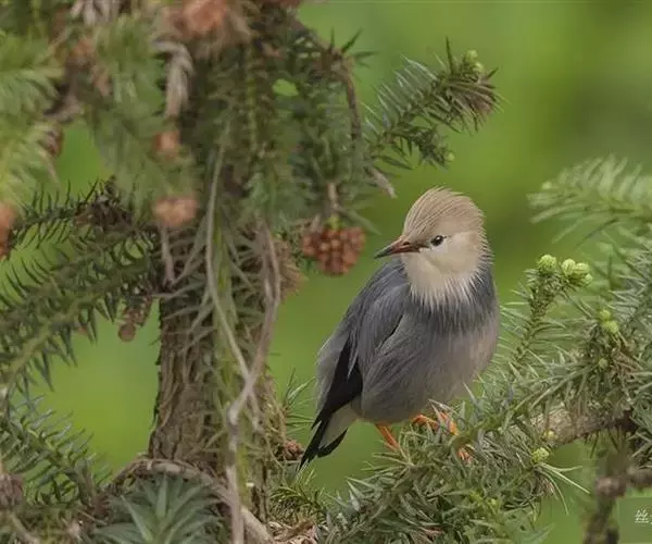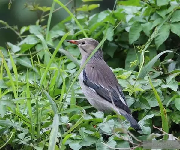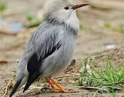 丝光椋鸟(学名:Sturnus sericeus):体型大小和其他椋鸟相似,体长20-23厘米。嘴朱红色,脚橙黄色。雄鸟头、颈丝光白色或棕白色,背深灰色,胸灰色,往后均变淡,两翅和尾黑色。雌鸟头顶前部棕白色,后部暗灰色,上体灰褐色,下体浅灰褐色,其他同雄鸟。特征均甚明显,野外不难识别。