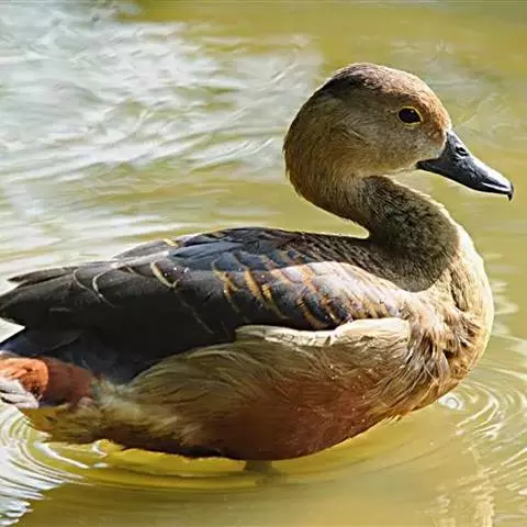 栗树鸭体长37-42厘米,体重400-600克,是中等体型的红褐色鸭。头顶深褐,头及颈皮黄色,…