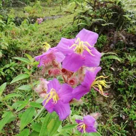 虎颜花是野牡丹科虎颜花属植物。多年生常绿草本,茎极短,被红色粗硬毛,具粗短的根状茎,略木质化;叶基生,…