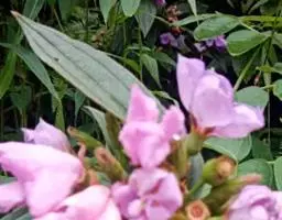 粉苞酸脚杆,是野牡丹科美丁花属的常绿灌木植物。粉苞酸脚杆其茎有棱或翅;单叶对生,常生于枝条上半部,…