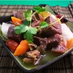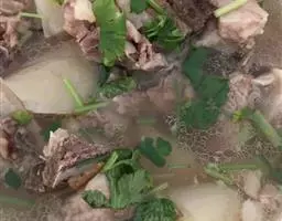 排骨汤,是用猪、牛、羊等动物剔肉后剩下的肋骨和脊椎骨制作的一道家常汤品。排骨除含蛋白、脂肪、维生素外,还含有大量磷酸钙、骨胶原、骨粘蛋白等,可为幼儿和老人提供钙质。
