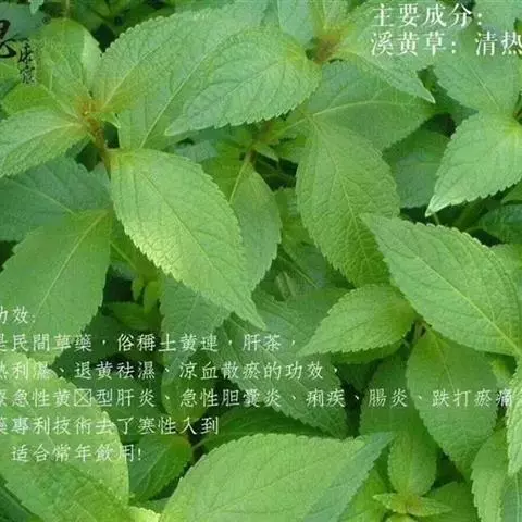 溪黄草是民间草药,俗称土黄连等,具有清热利湿、退黄祛湿、凉血散瘀的功效,用于治疗急性黄疸型肝炎、急性胆囊炎、痢疾、肠炎、跌打瘀痛等病症。