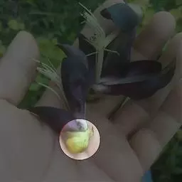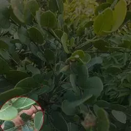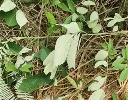 粉背黄栌叶卵圆形,较大,长3.5-10厘米,宽2.5-7.5厘米,无毛,但叶背显著被白粉;叶柄较长,…