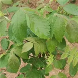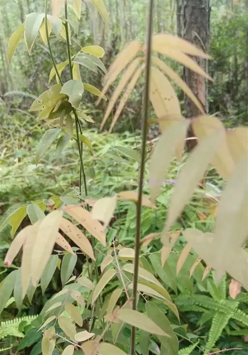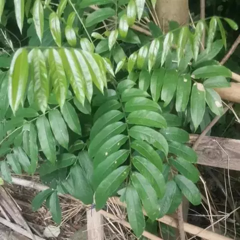 奇数羽状复叶互生,常螺旋状排列,有小叶4-6对,叶轴圆柱形,被微柔毛;叶柄长7-14厘米,被微柔毛,近基部膨大,半圆形,上面平;小叶膜质至薄纸质,卵形或卵状椭圆形或长圆形,长6-13厘米,宽3-6厘米,先端急尖或渐尖,基部偏斜,圆形或阔楔形,全缘,叶面通常无毛或仅沿中脉疏被微柔毛,叶背沿脉上被平展黄色柔毛,稀近无毛,侧脉10-15对,两面略突;小叶柄长4-7毫米,上面具槽,被柔毛。