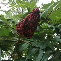 火炬树是漆树科盐麸木属落叶灌木或小乔木;株高,树形不整齐;小枝粗壮,红褐色,密生绒毛;叶轴无翅,…