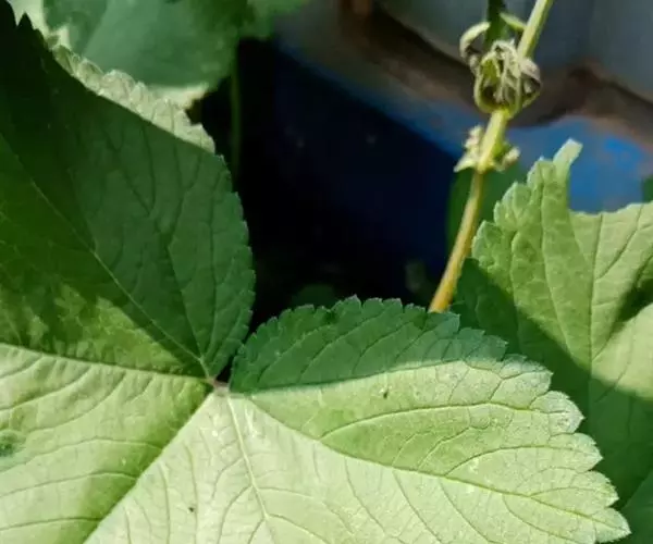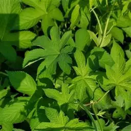 葎草(学名:Humulus scandens (Lour.) Merr. )是桑科,葎草属多年生攀援草本植物,茎、枝、叶柄均具倒钩刺。叶片纸质,肾状五角形,掌状,基部心脏形,表面粗糙,背面有柔毛和黄色腺体,裂片卵状三角形,边缘具锯齿;雄花小,黄绿色,圆锥花序,雌花序球果状,苞片纸质,三角形,子房为苞片包围,瘦果成熟时露出苞片外。花期春夏,果期秋季。