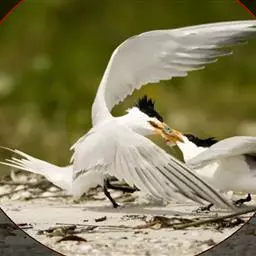 黑剪嘴鸥的卵 黑剪嘴鸥喂养后代 黑剪嘴鸥是一夫一妻制, 雌性共同在沙滩上筑巢,每窝产卵3~7枚,孵化期21~26天。野生黑剪嘴鸥寿命大约20岁。