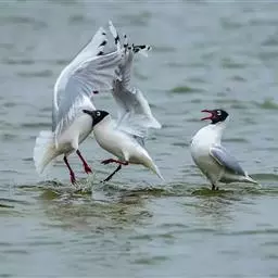 黑嘴鸥 中型水鸟,体长31~39厘米。嘴黑色,脚红色。夏羽头黑色,眼上和眼 下具白色星月形斑,在黑…