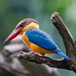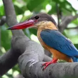 鹳嘴翡翠:体长33-37厘米。体重140-200克。共有13个亚种,体型大,嘴形巨大、侧扁,似鹳嘴…