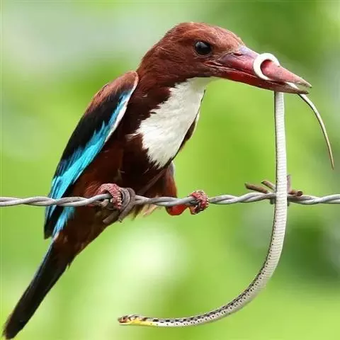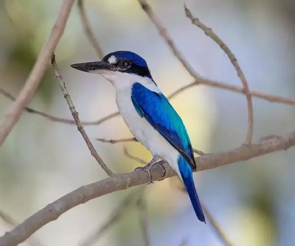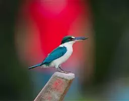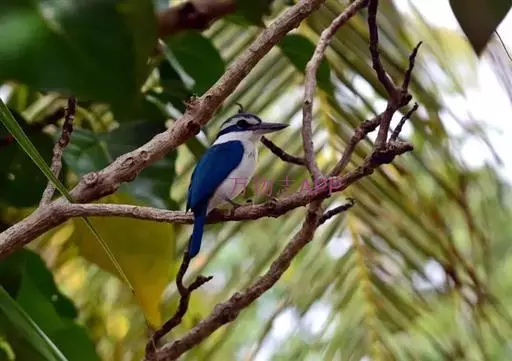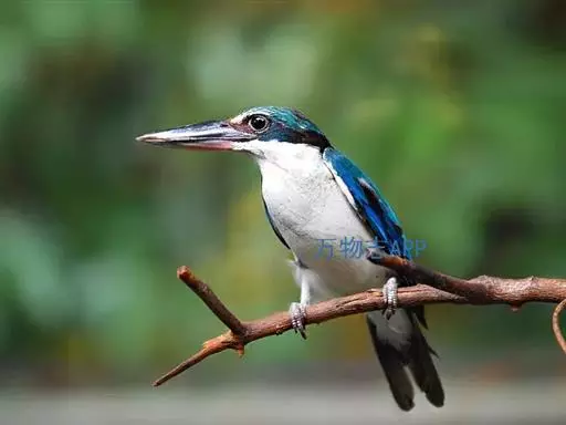 白领翡翠(学名:Todirhamphus chloris):有50个亚种。体长18厘米,体重35-40克。是一种蓝白色翡翠鸟。头顶、两翼、背及尾呈亮丽蓝绿色;过眼纹黑色;眼先黑色,眼眉白色或浅黄色,嘴上部具白点。以白色的颈环及下体为识别特征。 整个下体为白色。虹膜褐色;嘴上嘴深灰,下嘴浅灰;脚灰色。
