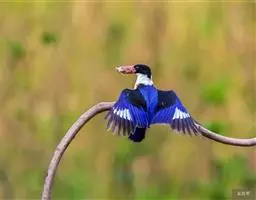 白腹鱼狗是佛法僧目翠鸟科的鸟类。前额和头顶部是深蓝色羽毛,底部和分尾完全是白色的,或多或少有浅黄色…