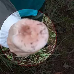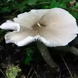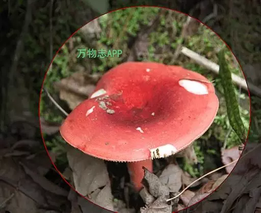 注意观察红菇伞盖下的菌褶,红菇的菌褶较厚,