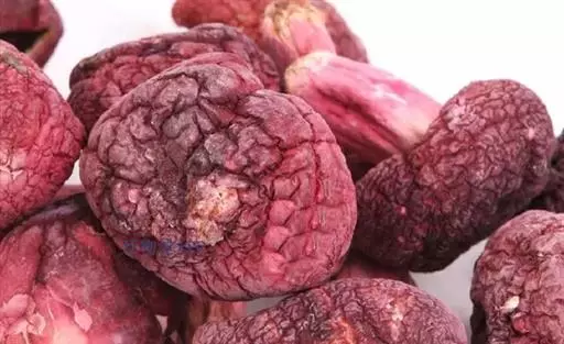 真的红菇,菌盖正面深红,中心暗红,并有横皱纹,菌盖腹面菌褶细密均匀,呈浅灰蓝色,菇脚矮圆不空心。叶盖全开并有破裂的红菇,则是将要过时的菇,但汤味好,未开伞的菌食来无渣。叶盖半开型如单车摇铃的红菇,属上等红菇,清香美味,一盆菜调上几个就独到好处。未开的红菇蕾,虽然未过到成熟期,却甜嫩可口。红菇便于保存,晒干后放在通风干燥的室内,不仅久不变质还会放出阵阵芳香,使人心旷神怡。 红菇做法指导:通常食用作蒸、炖、炒、烩均可,如与鸡、鸭等各种肉类同烹则味道更佳,素以醇厚鲜美,清香爽口,汤色清红著称。