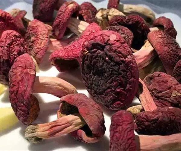 (1)合理采收野生红菇子实体成熟度六七成就可开采。合理采收对红菇商品价值关系较大。据西峡县调查,六成熟的未开伞红菇,市场收购价达600-850元/斤,而完全成熟的400-650元/斤,相差4倍。一般过成熟的开伞菇或已出现腐烂迹象的,内部绝大多数已虫蛀生蛆,失去商品价值,不要采收,宜留在林地作为繁衍种源,有利于翌年长菇。