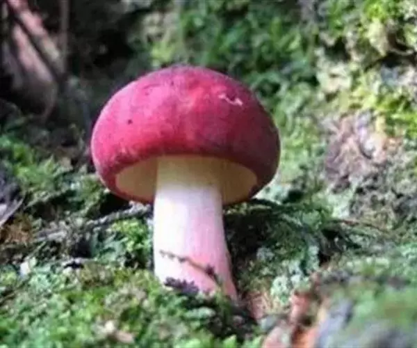 红菇伞盖顶部中央是暗红色或者暗紫色,