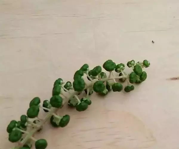 浆果球形,无柄,直径3~4毫米,成熟时红色,未成熟时干后变黑色。花期6~10月。