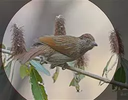 斑背噪鹛是噪眉科、噪鹛属中型鸟类,体长24-28厘米。额至头顶多为栗褐色,眼先、眼周和眼后纹均白色,…