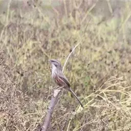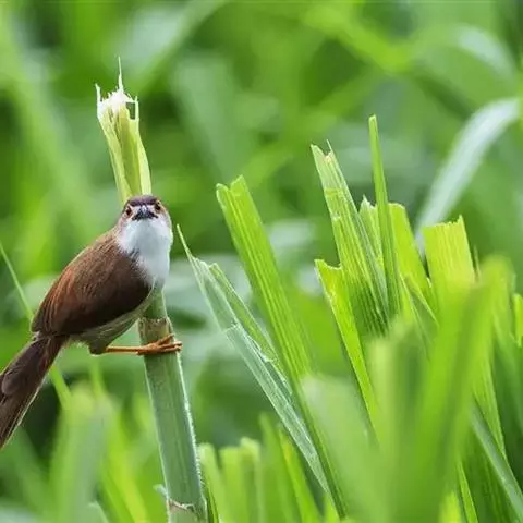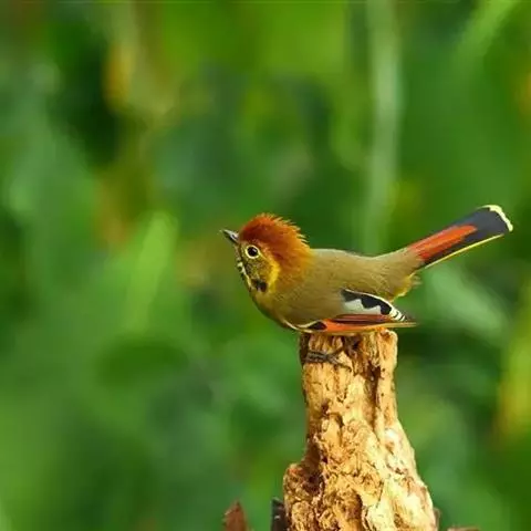 栗耳凤鹛,雌雄羽色相似。额、头顶至枕灰色,头顶有一短的不甚明显的羽冠,…