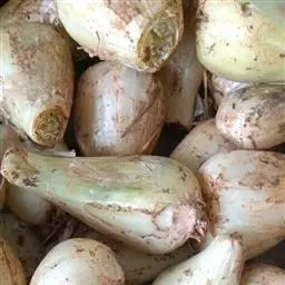 洋水仙由于自身生长环境和中国水仙的生长环境不同,外皮呈现为黄褐色的干膜状,较之中国水仙而言颜色更浅一些。除了一个主球,附有两个大小相近的侧球。鳞茎不肥大,所以并不适合雕刻。