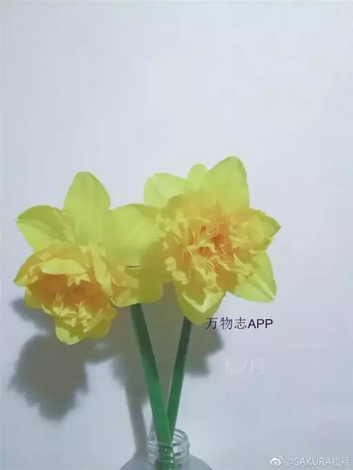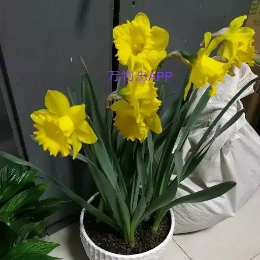 与长筒水仙相似,花被片和副冠均为黄色,花被片和副冠黄色,边缘波皱。