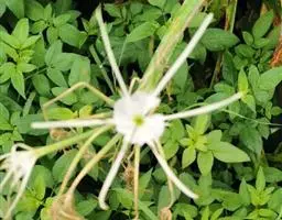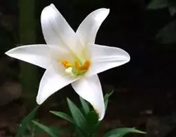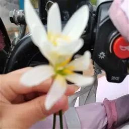 花常一亭一朵,直径5~6cm,花被片白色,向后卷曲,6片副冠呈酒杯状,白色,基部黄色。